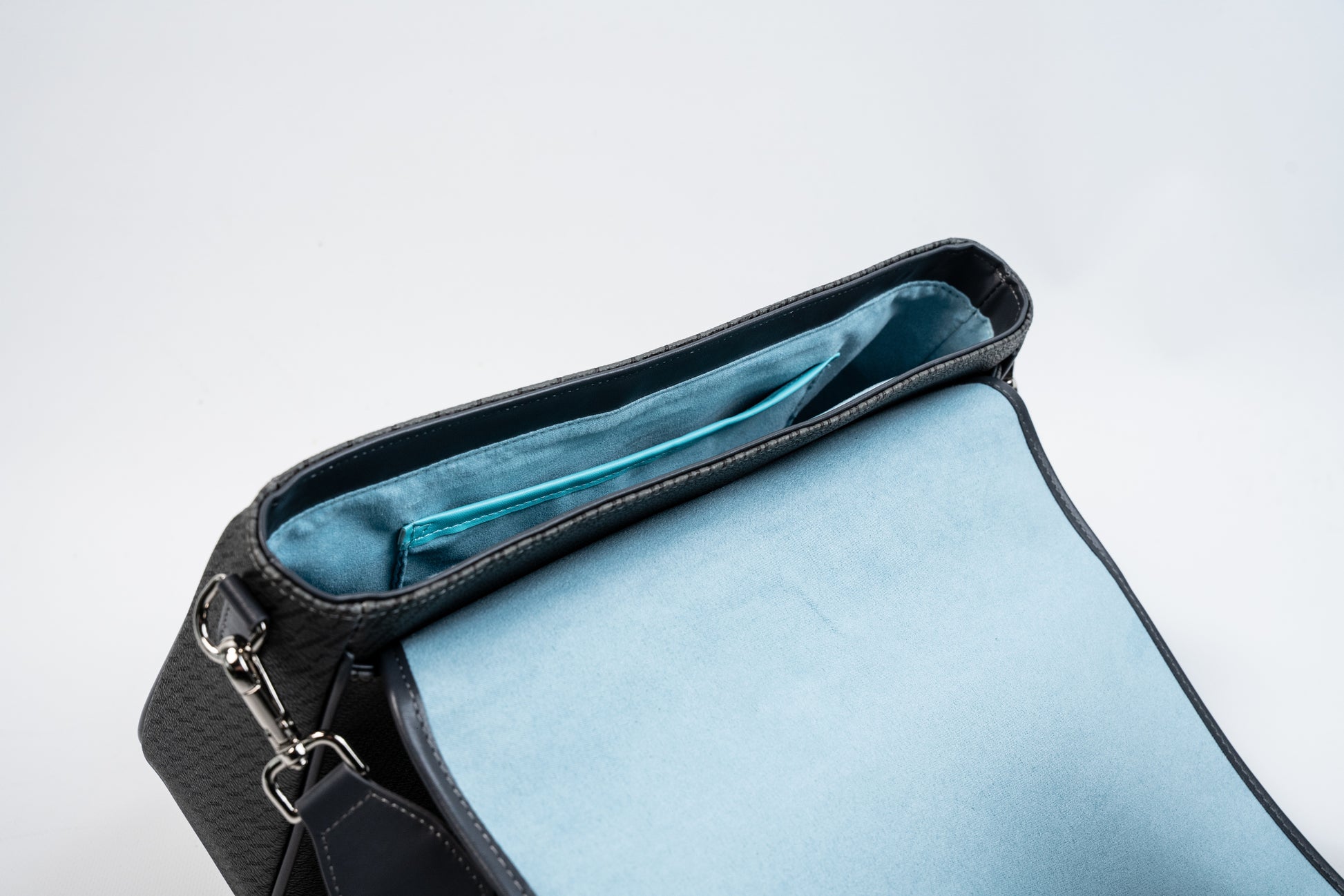 Smart Organization: 1 interior flat pockets / 1 interior zip pocket / Dedicated key holder with hook / Rear slip pocket for quick-access items